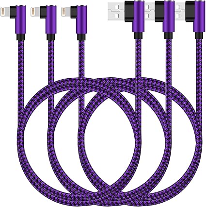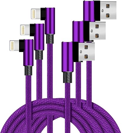Amazon Com Iphone Charger Cable 3pack 10ft Long Nylon Braided 90 Degree Lightning Gaming Cable Usb Charging Syncing Cord Compatible For Iphone Xs Max Xr X 8 8plus 7 7plus 6s 6s Plus Se Ipad Purple Home Audio Theater