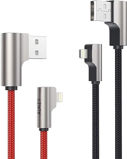 Amazon Com Aukey Right Angle Lightning Cable 3 3ft 2 Pack Nylon Braided Apple Mfi Certified Ideal For Playing Games Iphone Charging Cable Compatible With Iphone 11 X 8 Ipad And Other Apple Devices