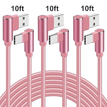 Amazon Com 90 Degree Usb C Cable 10ft Type C Cable 3 Pack Fast Charging Right Angle Nylon Braided Usb Charger Cable Charging Cord For Samsung Galaxy S9 S8 Note 9 8 Lg G6
