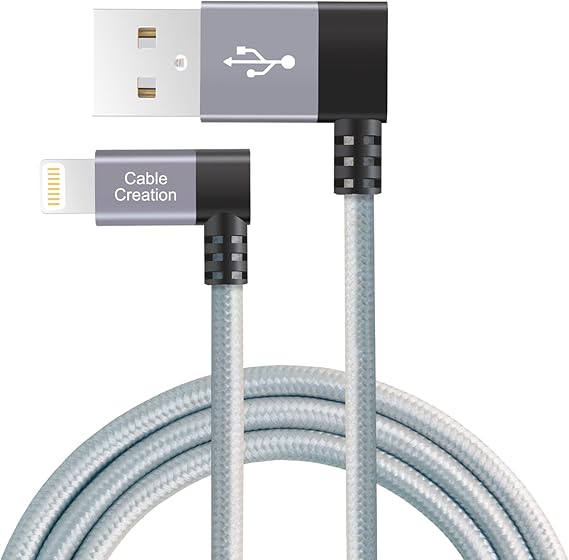 Amazon Com Cablecreation Iphone Charger Cable 90 Degree 4ft Mfi Certified Braided Left Angle Usb To Lightning Cable Usb Charging Cord For Iphone 11 X 8 8 Plus 7 6 6s 5 Ipad Space Gray 1 2m
