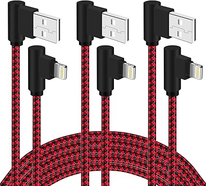 Amazon Com 90 Degree Iphone Charger 10ft Lightning Cable Braided 3 Pack Angled Charging Data Transfer Cord Compatible With Iphone X Xs Xsmax Xr 8 7 6 Ipad Red Black 10 Ft Home Audio Theater