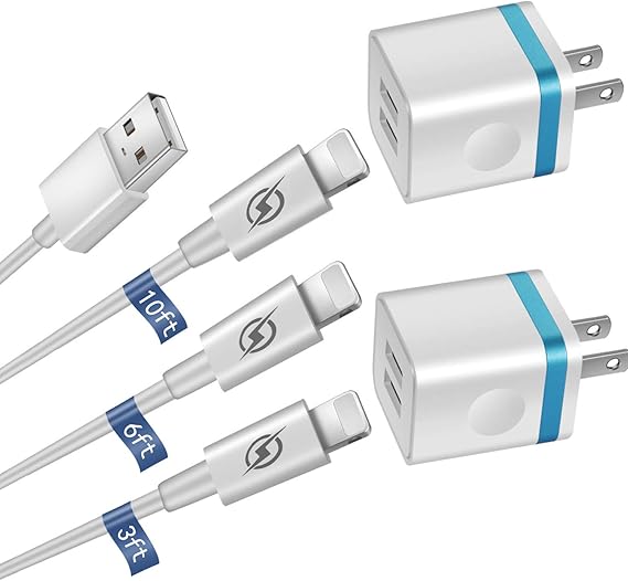 Amazon Com Arccra 5 Pack Iphone Charger 10ft 6ft 3ft Extra Long Fast Charging Sync Cable With 2 X Dual Port Usb Wall Charger Plug Adapter Compatible With Iphone 11 Xs Max Xr X 8 7 6s
