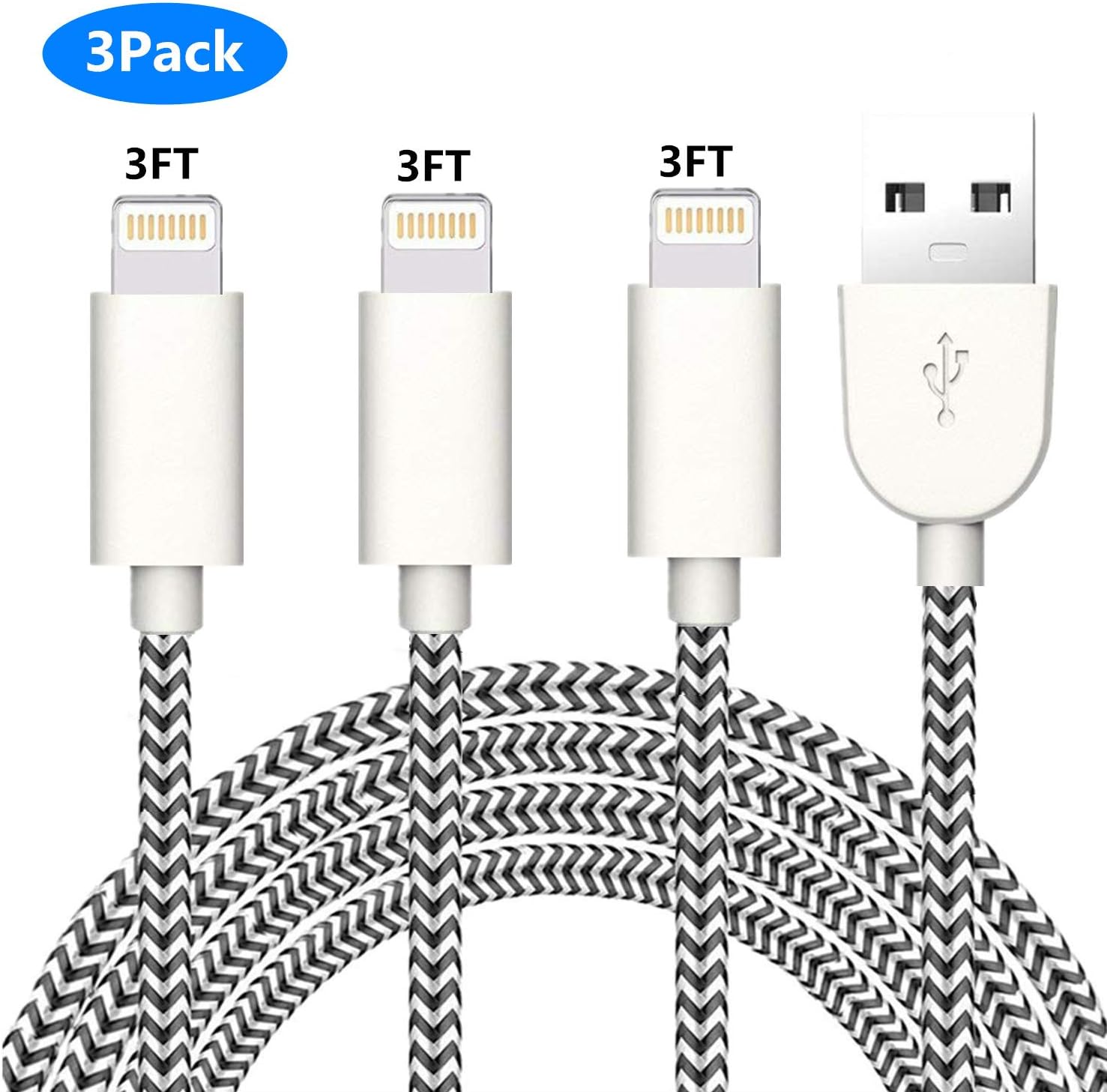 Amazon Com Sharllen Phone Charger Cable Lightning Cable 3pack 3ft Long Nylon Braided Fast Usb Iphone Data Line Wire Cable Charging Cord Compatible With Iphone Xs Max Xr X 8 7 6 Ipad Ipod Black White